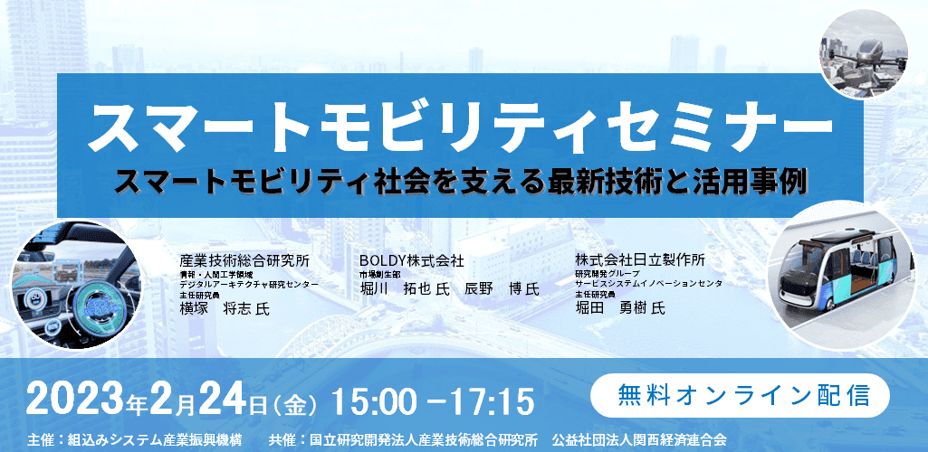 |  | 主催:組込みシステム産業振興機構(ESIP) 共催:(国研)産業技術総合研究所 (公社)関西経済連合会 |